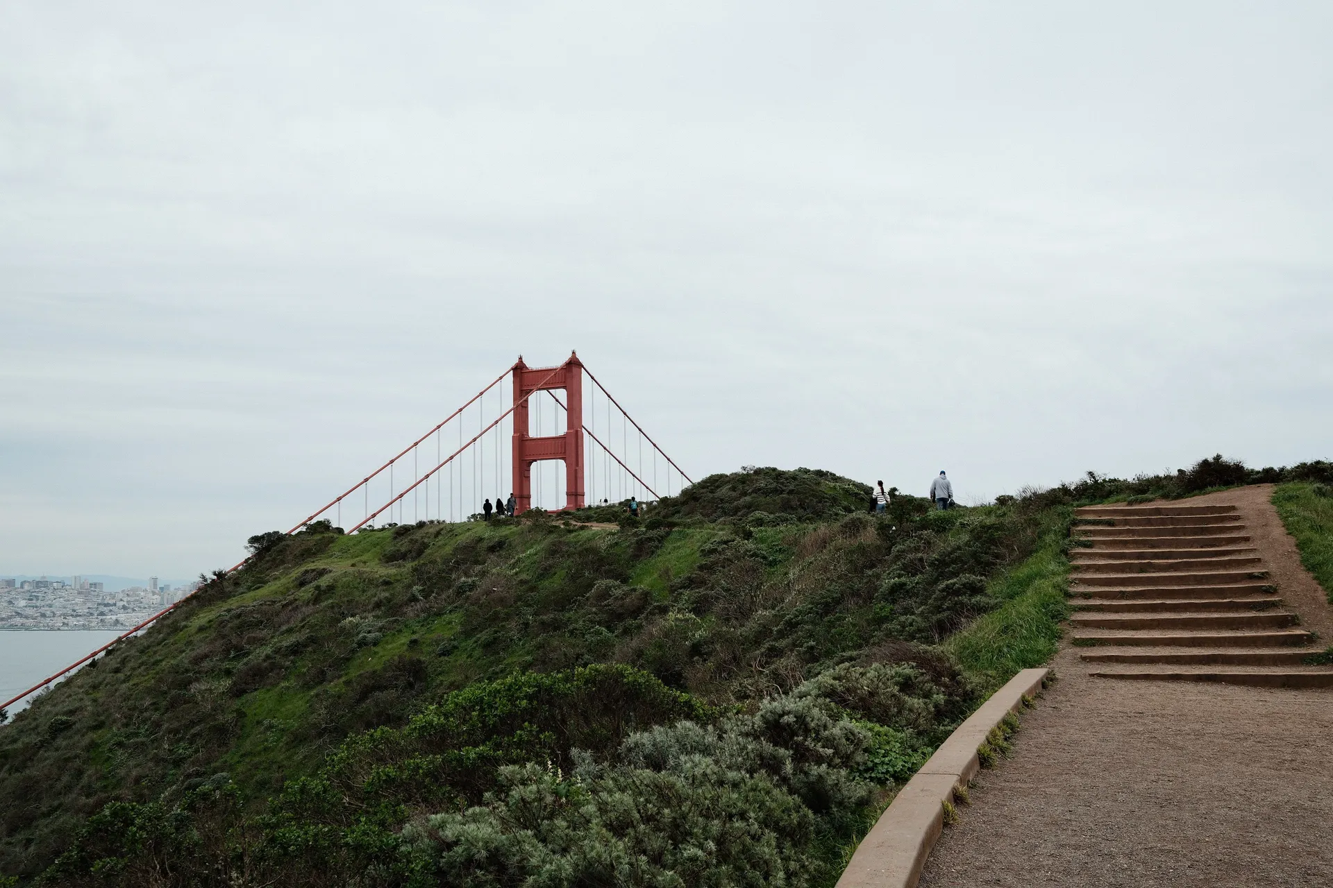 North of San Francisco, old military batteries give clear views of the Golden Gate Bridge.